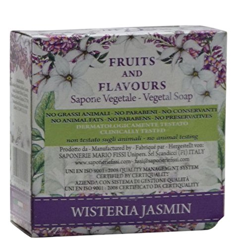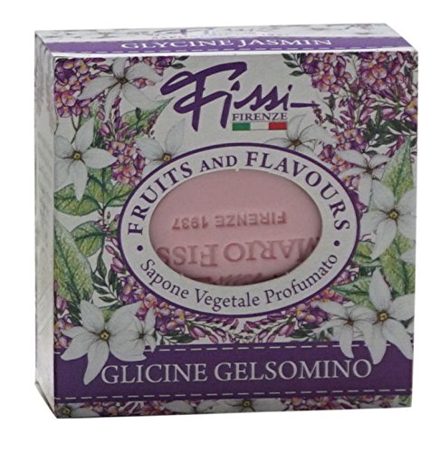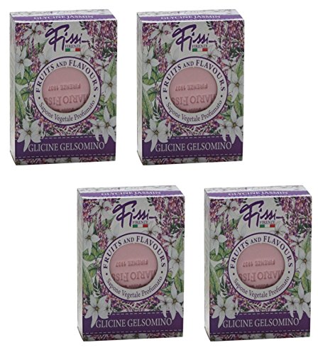 Saponerie Mario Fissi: "Glicine Gelsomino" Perfumed Vegetal Soap, Wisteria and Jasmin Scent, "Fruits and Flavours" Line 3.5 Ounce (100g) Package Pack of 4 [ Italian Import ]