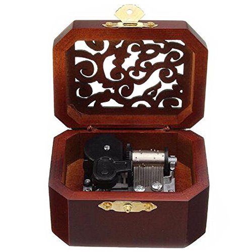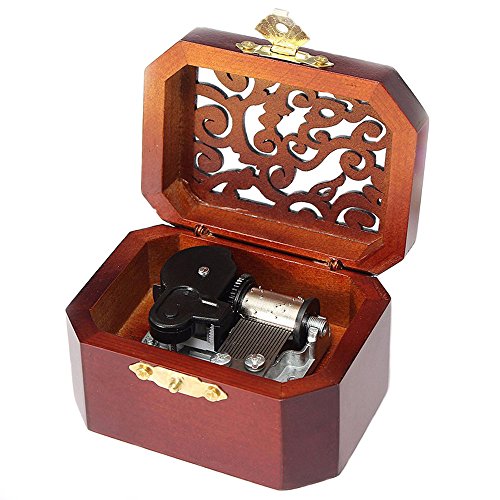 Antique Engraved Wooden Wind-Up Musical Box,The Wind Forest From My Neighbor Totoro Musical Box,with Silver-plating Movement in,Octagonal
