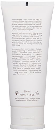 For Mature Skin. Firming Body Peeling Cream is a smooth-textured exfoliant to help refine the skin. Firming Body Peeling Cream is ideal for removing dead skin cells and helping refine the skin of the body. It also helps improve the skin’s ability to absorb any skincare products subsequently applied. Leaves the skin looking smoother and suppler. Exfoliating Grains made of Cranberry Seeds remove dead, flaky skin and help refine the appearance of the skin. An Extract of Sorbus Torminalis Fruit Stem Cells exclusive to BABOR supplies the skin with valuable antioxidants. Leaves skin looking more firm and lifted. Made with all natural key ingredients: Plant Stem Cells, Olive Oil, and Avocado Oil. All BABOR products are CRUELTY FREE and Never Tested on Animals. Vegan. Made in Germany. BABOR is the 2nd most sustainable luxury brand in Germany.Feature