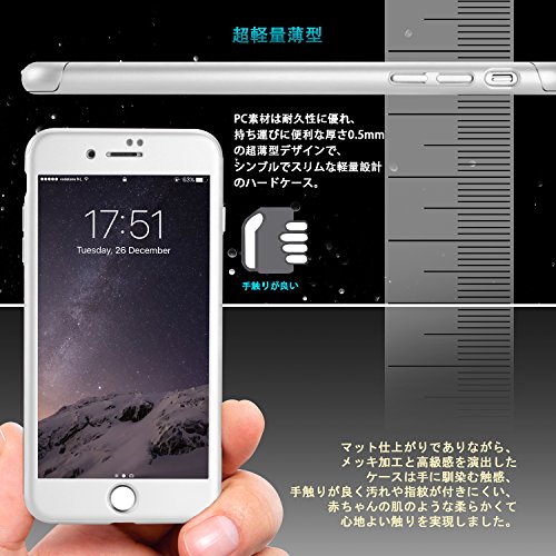 付属機能:【全面保護】:耐衝撃、防塵、指紋防止に優れた丈夫なiPhone7用ケース。ケースがカメラとスクリーンより高くして、下に伏せても、直接地面に摩擦しません。お携帯を全面的にしっかりと保護できます。 【強化ガラスフィルム付き】:ケースと強化ガラスフィルムを組み合わせたので、お客様は別にほかのガラスフィルムを買う必要がはありません。便利です。 【超軽薄】衝撃に強く、耐久性に優れた、傷がつきにくいポリカーボネート素材を採用、薄くて、軽くて、ケースを装着したまま、違和感がなく、本体のみのような手触りが良いです。シンブルなデザインですが、超薄型、超軽量で独特なフルカバーです。, 【装着簡単】:ケースの前蓋と後蓋は分けるデザインで、簡単に取り外し、組み合わせることができます。このケースを装着したら、好む色に変身できます!まるで新しいiPhoneを購入したようです。そして、画面の操作や指紋認証機能のTouch IDなど全て対応できます。【超軽薄】衝撃に強く、耐久性に優れた、傷がつきにくいポリカーボネート素材を採用、薄くて、軽くて、ケースを装着したまま、違和感がなく、本体のみのような手触りが良いです。シンブルなデザインですが、超薄型、超軽量で独特なフルカバーです。 【保証】商品は届いたら、しっかり検査してください。万が一不良ところがあるなら、出品者にクリックして、弊社へ直接ご連絡ください。すぐ処理します。 ご購入後30日間、万が一商品の品質に不具合がある場合は、返品・返金も可能です。