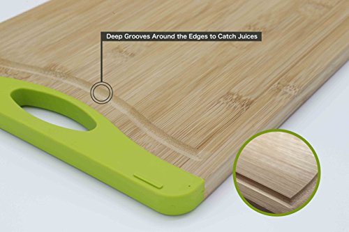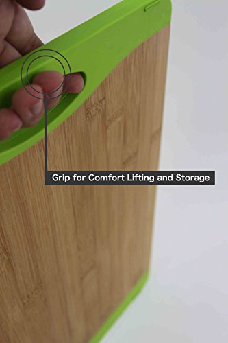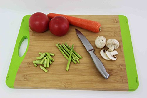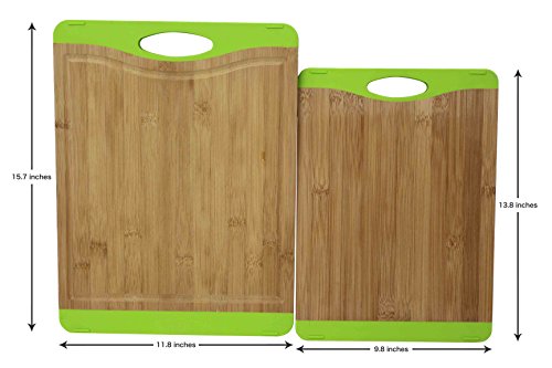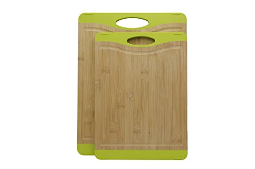 ChopMaster Large Green Bamboo Cutting Board for Kitchen with Silicone Handle Pack of 2
