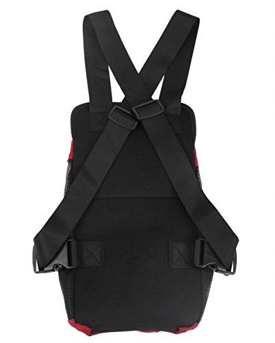 -. Feature : Ergonomic Design for Easy Carrying --- The dog carry backpack has adjustable shoulder strap, with buckle to fasten around your waist, so you¡¯ll feel comfortable and won¡¯t get any strain on your shoulder or waist. / Premium Grade Polyester Material --- The polyester material is really sturdy, durable, lightweight, soft, breathable, and will not tear apart and break easily. You can pretty much use it for a long time. / Infant-style design---You can carry them just like an infant on your back or front and they will look super cute in it. Great for cycling, travel, shopping, and walking outdoor with you pet. / Ultimate Safety for Your Dog --- There are velcro, zipper, self-fastening elastic side opening to fit snugly and hold the whole pet and let your pet enjoy a soothing stroll while keeping your hands free. / Large Size: 2.4"(left leg to right leg) / 5.1"(front leg to hind leg); Suggest for pets about 2.5-4 kg in weight & pets. 4 holes for legs out, 1 hole for tail out.