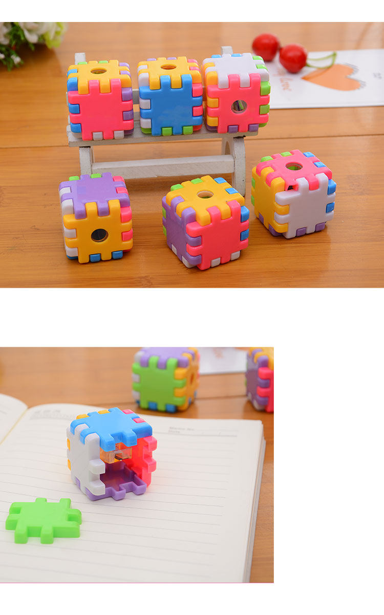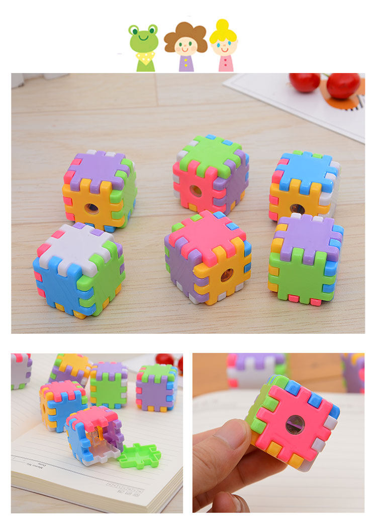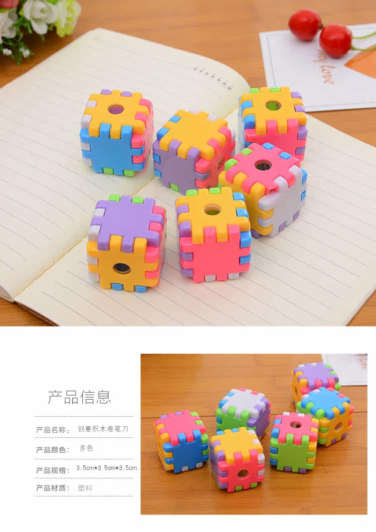 儿童创意积木卷笔刀 学生用可彩色文具铅笔刀旋转笔刨削笔器
