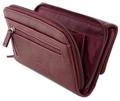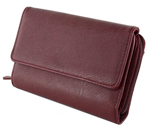 Feature : Measurements 7.5" x 4.5" x 1.25" - Faux Pebble Grain Leather / RFID Protector Shields your Credit Cards and Personal Information from Theft / Front Flap Over Section with 2 Snap Closure to hold items securely even when fully packed / Accordion Expanding Zip Around Back Compartment w/ 2 Section Divider, Back Easy Access Slip Pocket and Zippered Pouch / Interior Checkbook Cover, 2 ID windows, Photoflips w/ 4 Windows, Pen Loop, 8 Card Slots