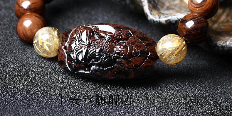 开光天然金丝红曜石大势至本命佛手链生肖属马守护神手串