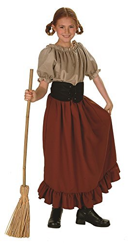 -. Binding : Toy -. Brand : RG Costumes -. ClothingSize : One Size -. Color : multi-colored -. Department : womens -. Feature : Renaissance Peasant Child Economy Costume includes Dress, Waist Cincher (Broom not included) / Colors: Different than pictured: Chocolate Brown, Tan, Black. 100% Flame Resistant Polyester (machine washable) / Per Mftr. Child Small (4-6 for ages 4-6), Medium (8-10 for ages 6-8), and Large (12-14 for ages 8-10) (Mftr's have gone to this as although the "sizing" is correct, children nowadays seem to wear sizes well beyond their "age" and some people still try to purchase by "age" - TENDS SMALL (when in doubt, purchase UP) / Dress: Slips on over head, elastic neckline, sleeves and walistband, ruffle accents the hemline, fabric is faux suede; Waist Cincher: ties around waist, laces in front, pleather fabric w/ metal grommets for extra durability / Measurement for 12-14: skirt length: 32", waist: 21", bodice length: 13" -. Label : RG Costumes -. Manufacturer : RG Costumes -. MPN : 91120-L -. PackageQuantity : 1 -. PartNumber : 91120-L -. ProductGroup : Toy -. ProductTypeName : TOYS_AND_GAMES -. Publisher : RG Costumes -. Size : One Size -. Studio : RG Costumes -. Title : RG Costumes Renaissance Peasant Girl Child Costume-