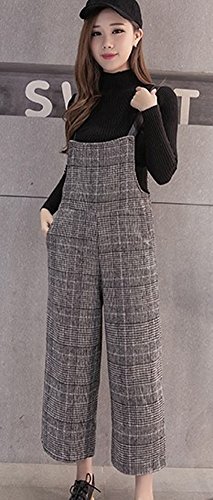 -. Title : (レアノリ)Leonori レディース グレンチェック ワイドパンツ サロペット オールインワン ガウチョ ガールズ 秋冬 演奏会