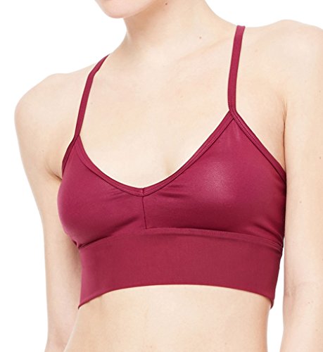 Alo Yoga Women's Aria Bra, Black Glossy/Black, Medium