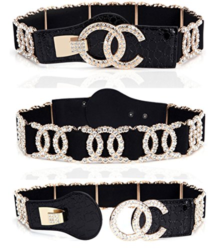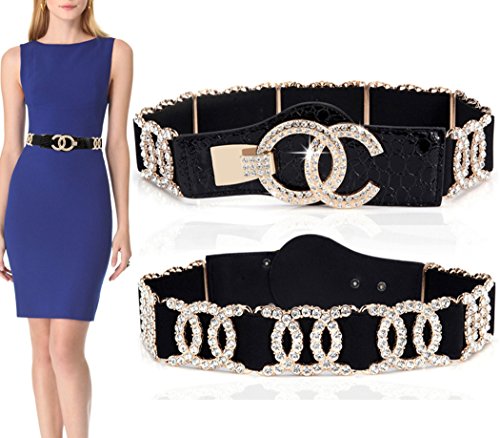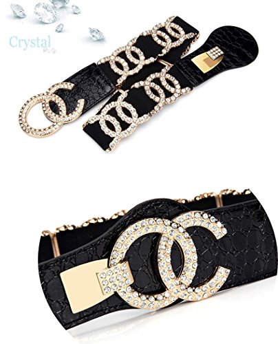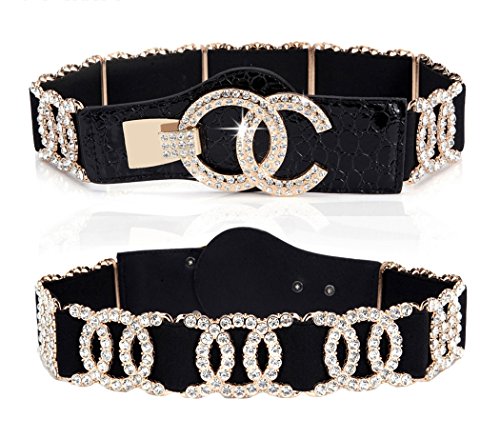 Binding : Apparel Product Description Stretch Belt for Women Luxury with Rhinestone Corlink Stretch Waist Belts Material:High Quality Faux Leather and crystals /Buckle: compound metal /Decorate: rhinestone M(26-35"): Relaxed without stretch length :26" /Maximum stretching length :35" Suitable Waist Size: 26" to 35" XXL(31-45"): Relaxed without stretch length :31"/Maximum stretching length :45" Suitable Waist Size: 31" to 45" Width:1.99" Colors:Red and white and Black and Blue and Leopard Print Width:1.34" Colors:Gold and Silver Before order,Please double check your size whether match or not