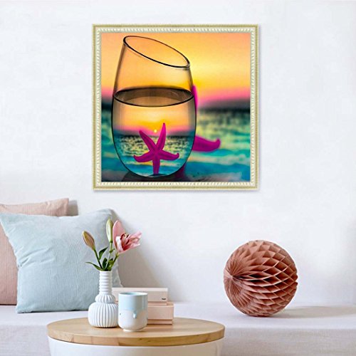 21secret 5D Full Drill Diamond Diy Painting Handmade A Glass of Water with Sunrise Sea Starfish Scenery Cross Stitch Home Decor Embroidery Kit