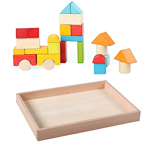 -. Feature : Made of natural beech wood, Non-toxic painted and no sharp edges pieces. With 1 wooden box ease of storing and transporting / 26 pieces wooden blocks set, more than 7 bright colors and 9 fun shapes,such as rectangular P.R.Isms, cubes, cylinders, half circle, arches, rectangular planks and triangles.Ideal for the little builder first construction projects / Your little builder can stacking the bricks as their imagination, pass the hours constructing cities, houses, animals, castles, towns, bus, flower and more. Sort them and knock them down, provided hours of building fun for children / Educational toy for kids, they can integrate their own constructions into pretend play scenarios, it's very useful for them to learn about shapes , sizes and to improve child's motor skills ,hand-eye coordination, spatial skills,creativity, divergent thinking and social skills / Suit for 2 year old and plus, approved ASTM and CPSIA test. All the blocks are bigger than choking hazard testing tube, safe for children