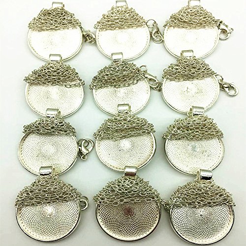 IGOGO Round Pendant Trays And 24 Inch Length Vintage Style Necklaces Antique Bronze,1 Inch,12 PCS