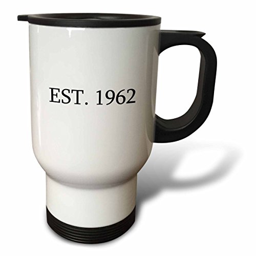 3dRose tm_161360_1 "Est. 1962 Established in 1962 Personal Birth Year black Text Stainless Steel" Travel Mug, 14 oz, Natural