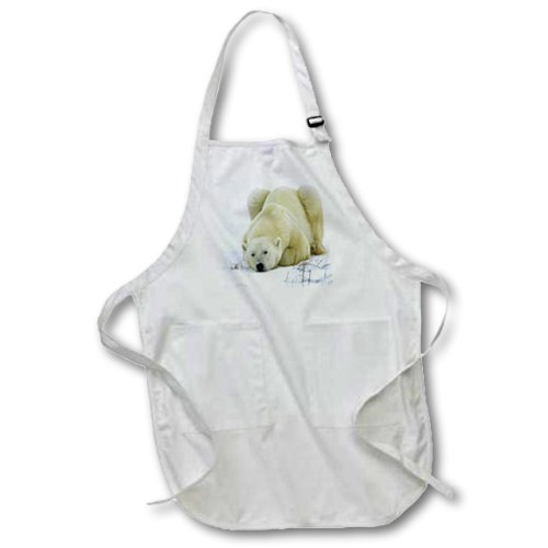 3dRose apr_53287_1 Polar Bear Nap Full Length Apron with Pockets, 22 by 30-Inch, White