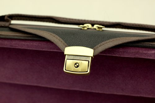 -. Feature : Dark brown exterior with brown trim; Magenta/amoeba pattern interior; matching blanket / Deluxe matt finish lock, strong adhensive handle / Hygrometer; two bow spinners; suspension / Shoulder strap, extra D-ring for backpack option / 5~6 lbs