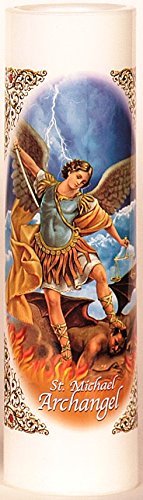 St. Michael Archangel | San Miguel Arcangel | LED Flameless Prayer Candle with Automatic Timer | Veladora de Oracion Sin Llama | English & Spanish| Catholic/Religious Mothers Day Gift Idea