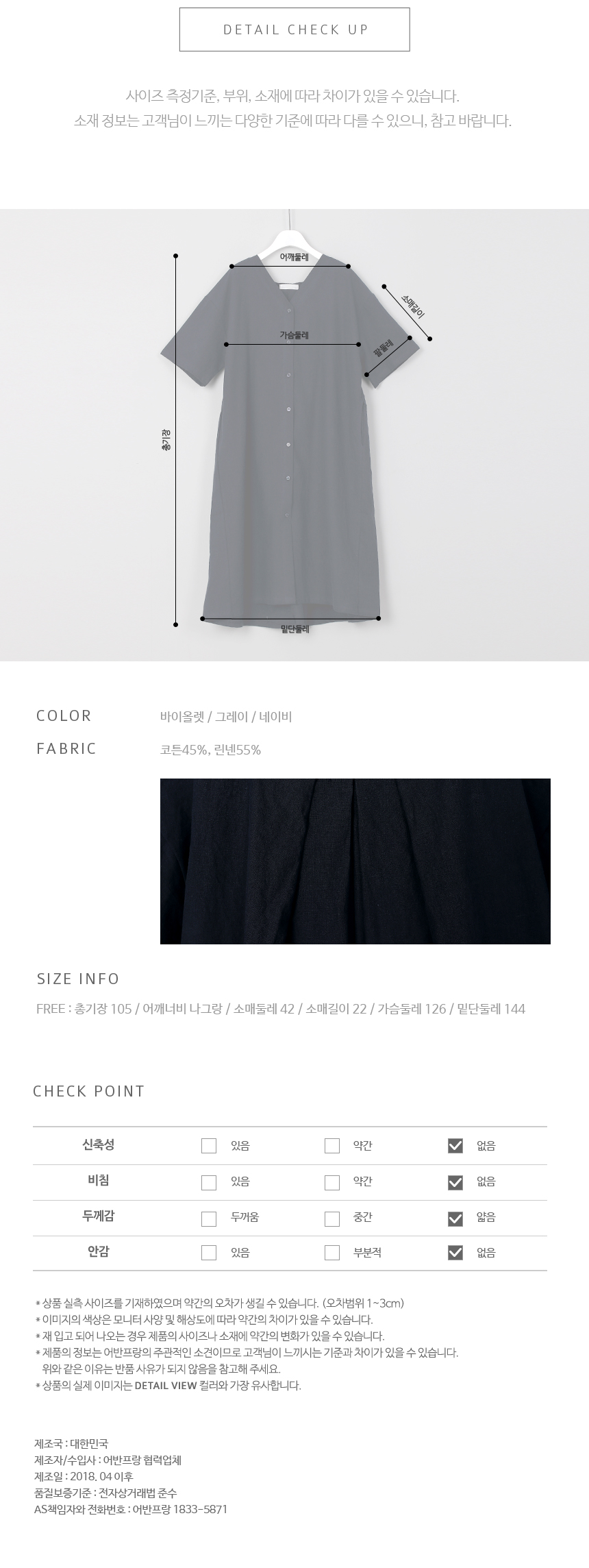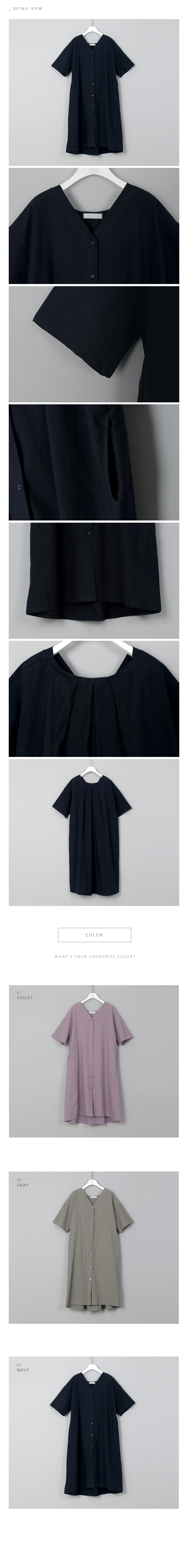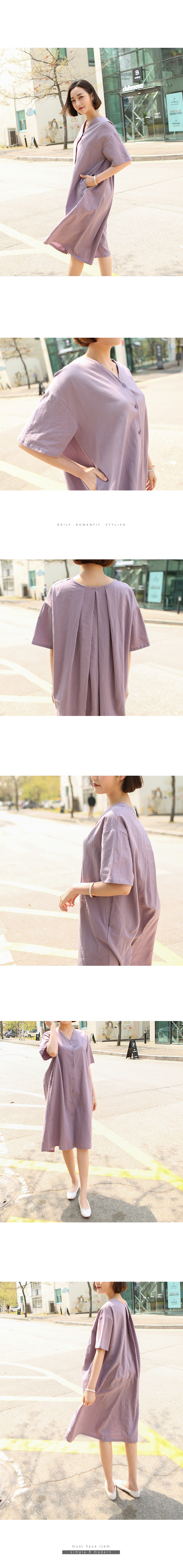 전체적으로 루즈한 오버핏으로 브이넥에단추로 클로징하는 심플한 앞라인의 디자인과뒷중심에 2단으로 주름을잡아 독특한 디자인이어우러지는 멋스러운 원피스랍니다과하지 않은 브이넥으로 목선이 예쁘게 드러나며편안한 오버핏으로 사이즈에 크게구애받지 않고 편안하게 입기 좋답니다코튼, 린넨 혼방으로 자연스러운 질감이멋스럽고 한여름까지 시원하게 입기 좋답니다색상은 바이올렛, 그레이, 네이비사이즈는 FREE 44~77