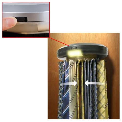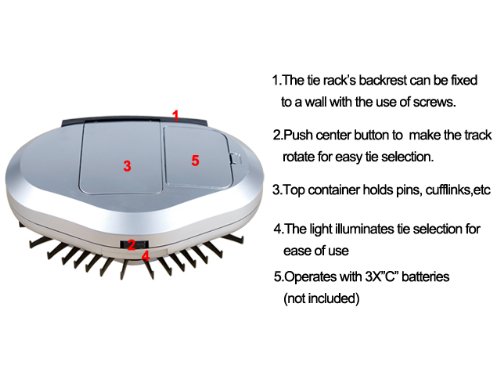 Operated by 3x C-batteries (batteries not included) with a built-in light (which automatically turns on while the ties are being rotated), rest assured that the electronic revolving tie rack will still work perfectly in the dark, power-cuts in your home or even if you do not want to disturb your other half by switching on the bedroom lights!