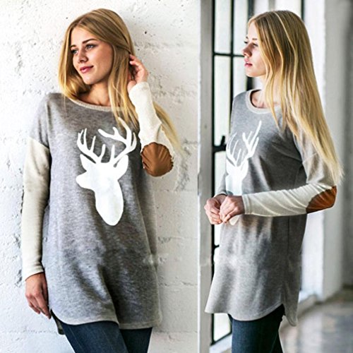 -. Title : Muxika Fashion Women Long Sleeve Deer P.R.Inted Casual Blouse Loose Tops T Shirt