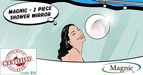 Magnic - 2 Piece Shower Mirror | Mounts on Shower Curtain or Shower Liner | Home, Travel, Gym, College | With Leading Anti-Fog Technology