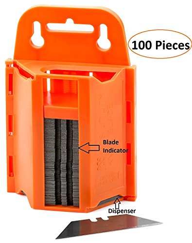 100-Pack Utility Knife Blades With Dispenser- Sharp Utility Knife Blades - With Dispenser For Safe Storage And Easy Disposal- By Katzco