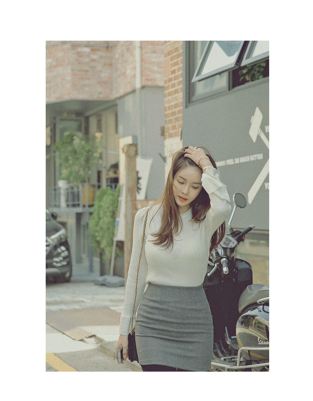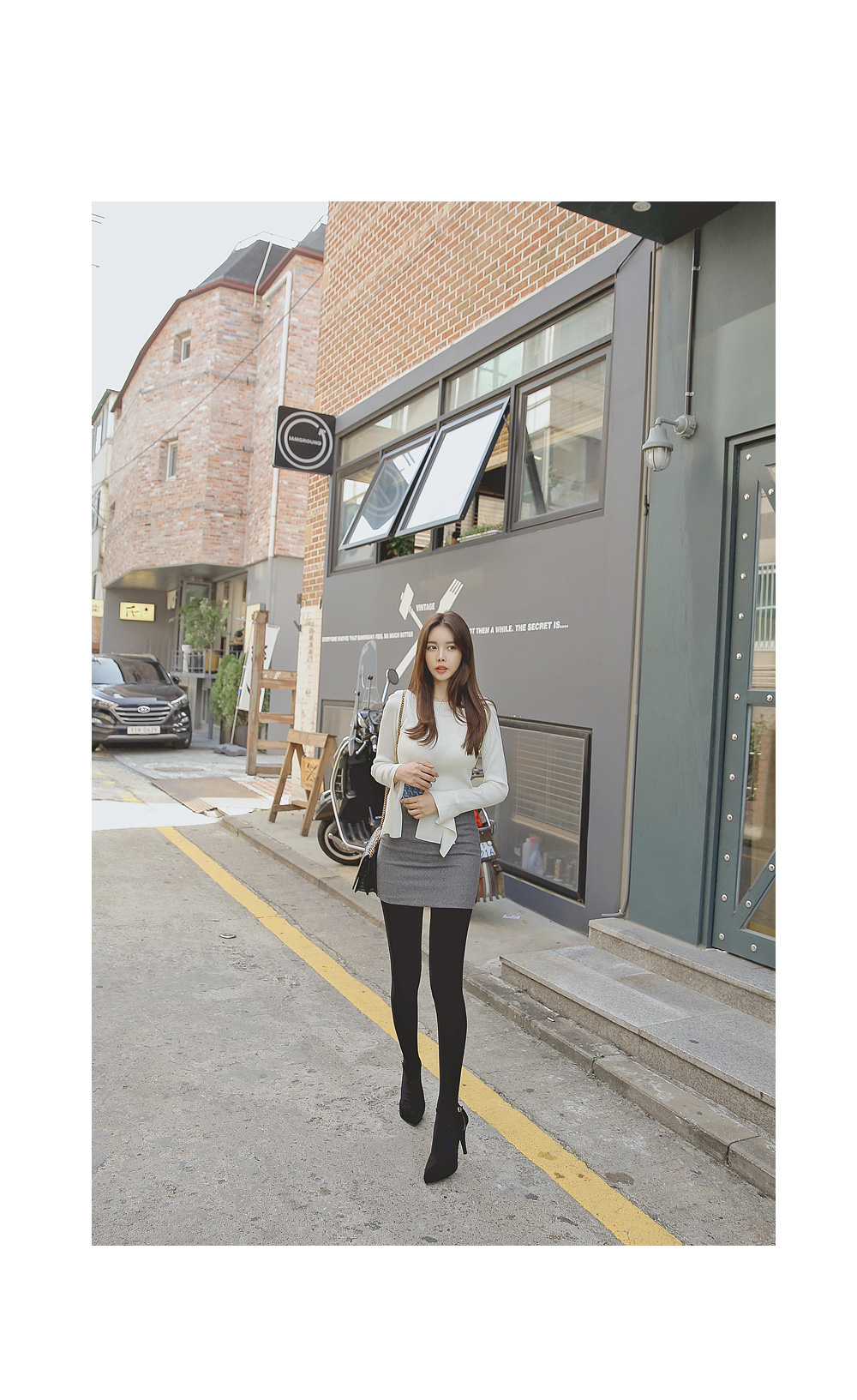 살짝 하이웨스트로 다리가 훨씬 길고 늘씬해 보이는 효과를 주구요. 무릎 위로 올라오는 미니기장의 H라인으로 여성스러운 실루엣을 연출해 준답니다. 깔끔한 디자인에 사이드의 지퍼로 군더더기 없이 깔끔하게 입기좋구요 캐주얼함과 동시에 페미닌한 매력을 가진 스커트예요. 기본 무지로 모던하면서 심플하게 즐기기 좋아 추천해드립니다.