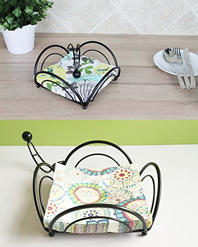 Passionier Metal Flower Flat Napkin Holder Weighted Tissue Paper Holder For Table And Kitchen Countertops,Black