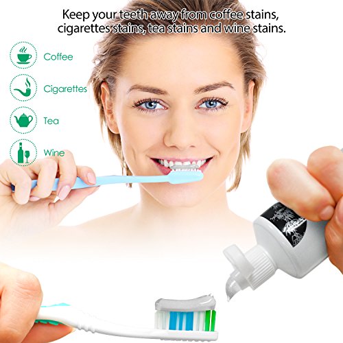 ✅ WHITEN YOUR TEETH: If you are a huge coffee and tea drinker, as well as a former smoker with yellowish surface stains, this dental charcoal toothpaste is a safe alternative to eliminate and absorb coffee and tea stains on the teeth and leave behind a pearly white smile.