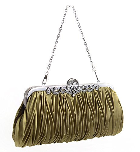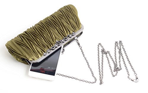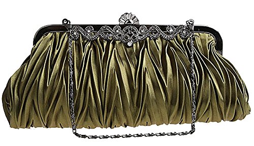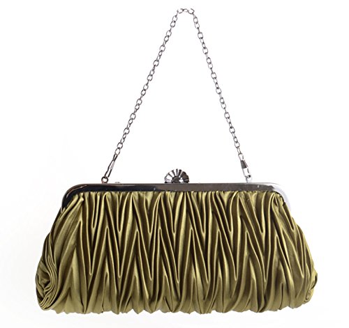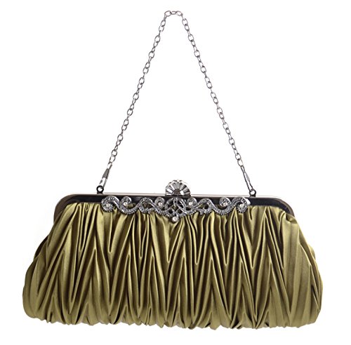 Pulama®Womens Vintage Satin Pleated Envelope Evening Cocktail Wedding Party Handbag Clutch - Elf of Bolsas (17 Colors) (Army Green)