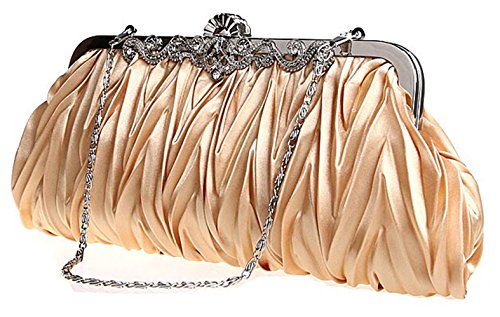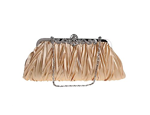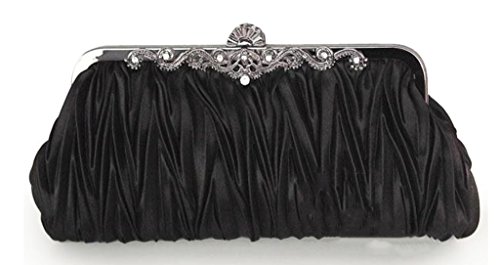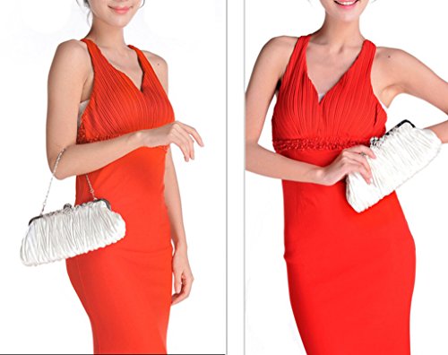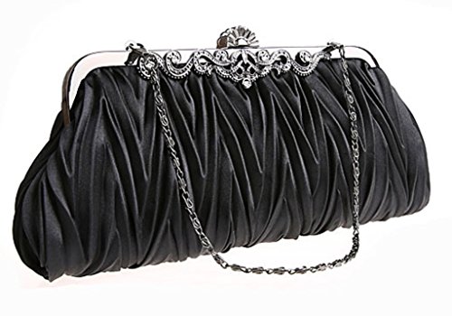 Product Description A beautiful evening clutch is the only way to go when you are partying the night away, going to a fancy event or wedding. This cinched fabric clutch has a decorative boarder along the top of the clutch that exudes high-class fashion. The clutch can convert into additional styles with its strap styles: (1) Chain Strap Handbag - allow you to keep your purse close to your body without holding it in your hand - Length of Short Strap: 16" (Approx.) (2) Long Shoulder Strap - This hands free option lets your bag hang low or across your chest - Length of Long Strap: 47"(Approx.). NOTE: Due to differences between monitor displays, actual color may vary slightly from image. 0
