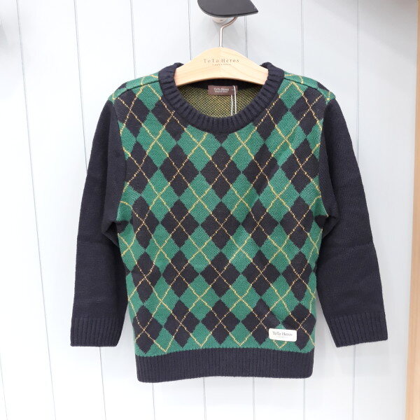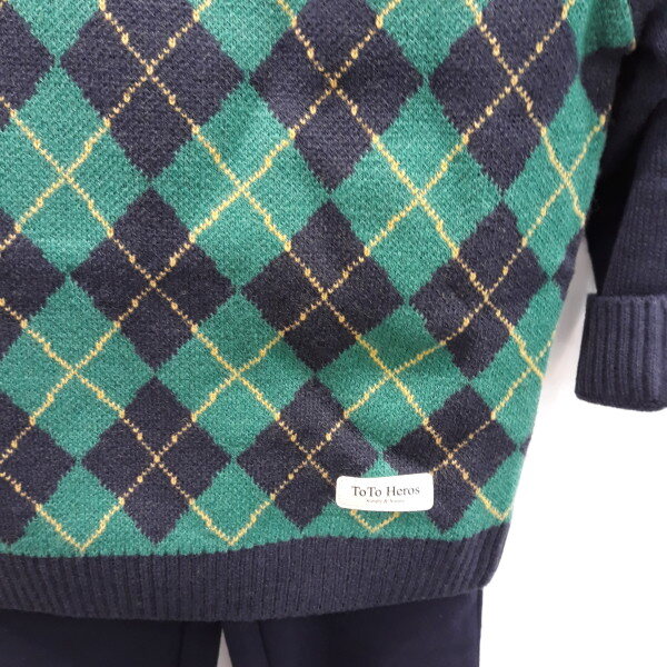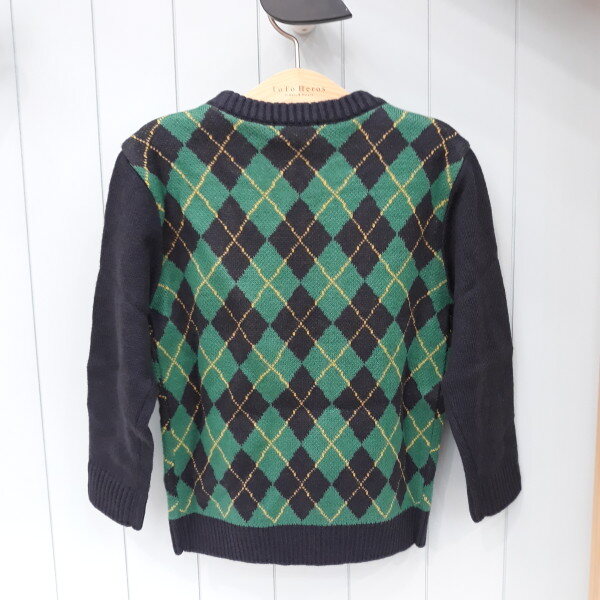 그린과 네이비 칼라배색의 아가일 쟈카드 니트.아우터안에 코디해서 보온성을 높일수있는 아이템