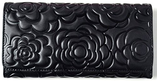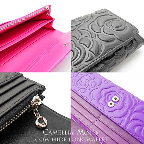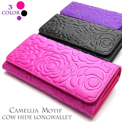 材質::牛革エンボス加工(カメリアモチーフ型押し) 内側 フェイクレザー