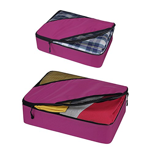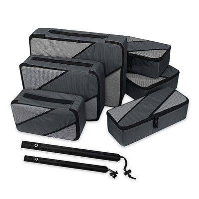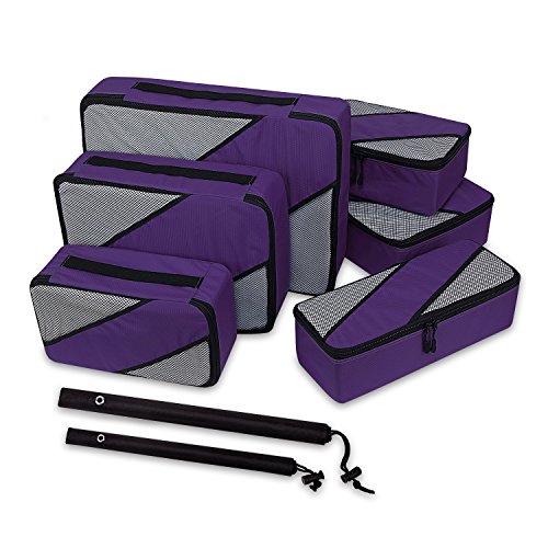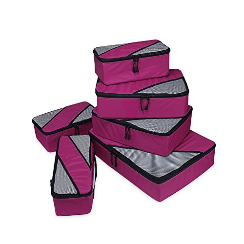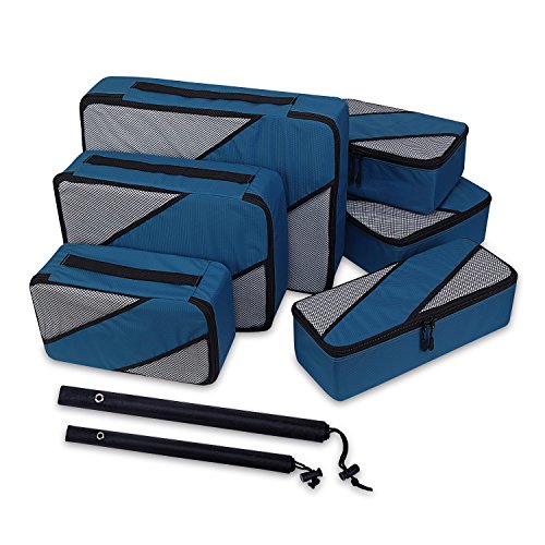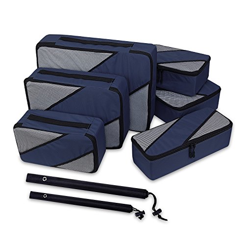 Our packing cube system fixes that issue by neatly packing all your clothes tightly into our space saving bags. It allows you to easily store and organize your clothing that makes it easy to pack and even easier to unpack. And it included 1 laundry bag and 1 shoes bag with your cube sets so that you can separate your dirty clothing from your fresh clothes on your journey back home. It is reinforced with a Z-Design web stitching made specifically to prevent the fabric from folding in the middle, allowing for a more secure packing experience. Our bags are deep inch giving you enough space to pack more clothing. Finally, we have used the sturdy zippers on all our cubes. our zippers are the largest high quality manufacturer of zipper and are known for their smooth sturdy zippers.