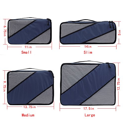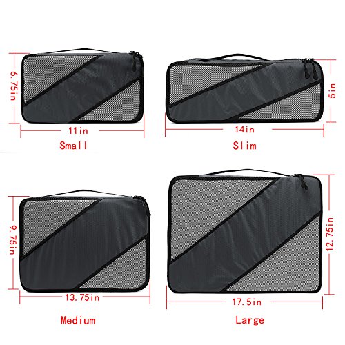 Lightweight Durable Made of Hight-qulity waterproof nylon fabric. Packing cube comes with a webbing handle for easy grabbing, carrying separately, or hanging. Get Organized The packing cubes allow for neatly organizing both smaller and larger items with ease.Sort your items into different categories based on type or destination and Easy to store when not in use. Mesh Tops for Breathability and Visibility Zoppen packing cubes feature breathable, mesh-top panels that offer not only important ventilation, the soft mesh won't damage delicate fabrics, so you can arrive in design without having to worry. Machine Washable To clean, simply zip the packing cubes closed and machine-wash in cold on gentle cycle. The packing cubes dry quickly (line dry only).