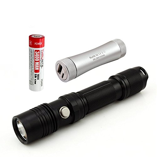 ThruNite TN12 EDC LED Flashlight Max Output 1100 ANSI Lumen with Cree XP-L LED 5 Versatile Modes Waterproof to IPX-8 with ThruNite C2 Portable Charger & 1 x ThruNite 18650 3400mAh Battery