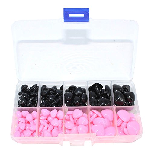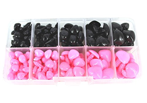 BESTCYC 130pocs 8~16mm(5size) 2Color Plastic Safety Nose D-type Nose for Doll Teddy Puppet Making - All in One Box