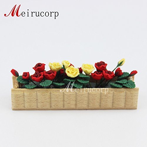 NICE 1/12 SCALE DOLLHOUSE MINIATURE DECORATION RED AND YELLOW FLOWER BEDS MODEL