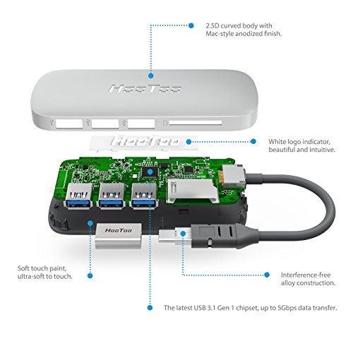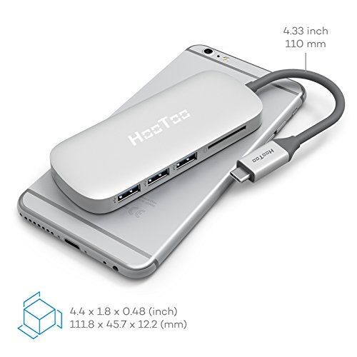 USB C Hub HooToo Adapter Type C Hub with 3 USB 3.0 Ports and Card Reader for 2015/2016 New MacBook and more USB C Devices