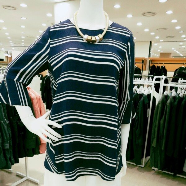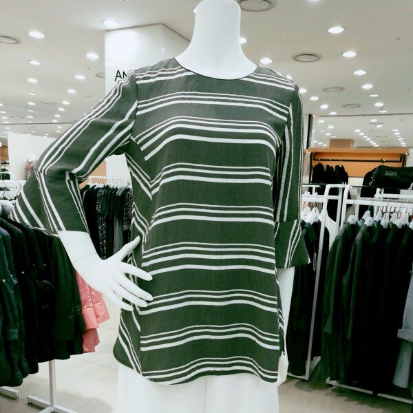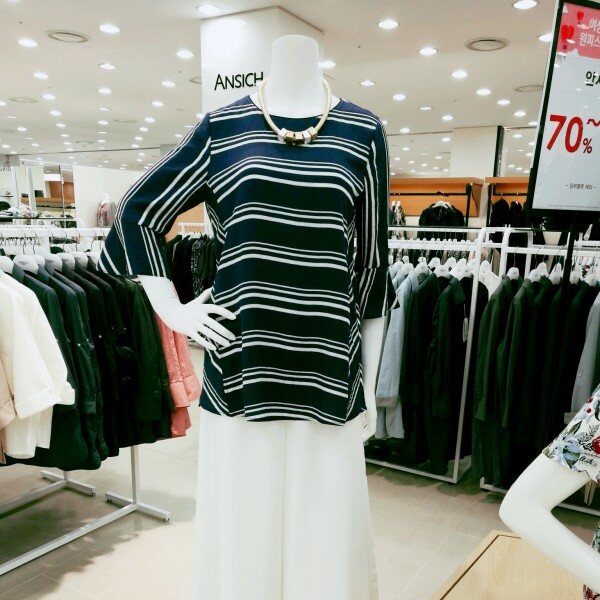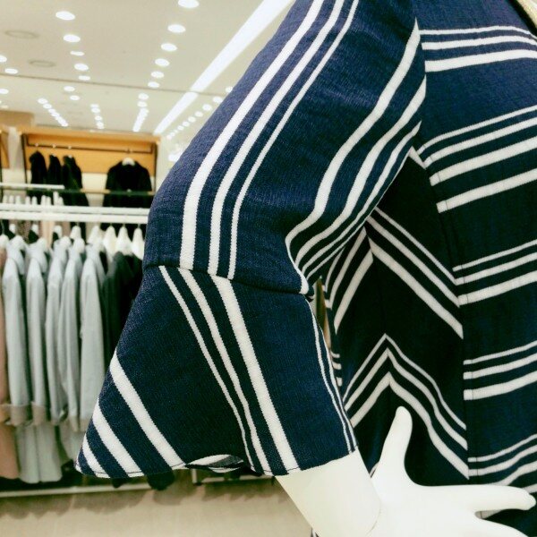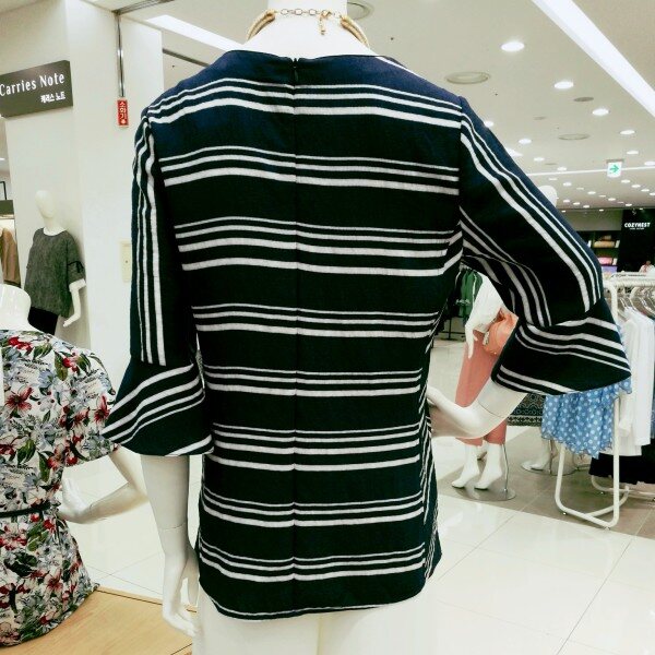 라운드카라의 7부브라우스입니다요즘유행하는 벨소매로 트렌디하게입으실수있습니다