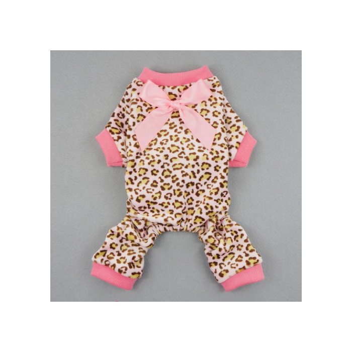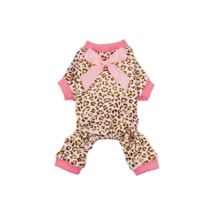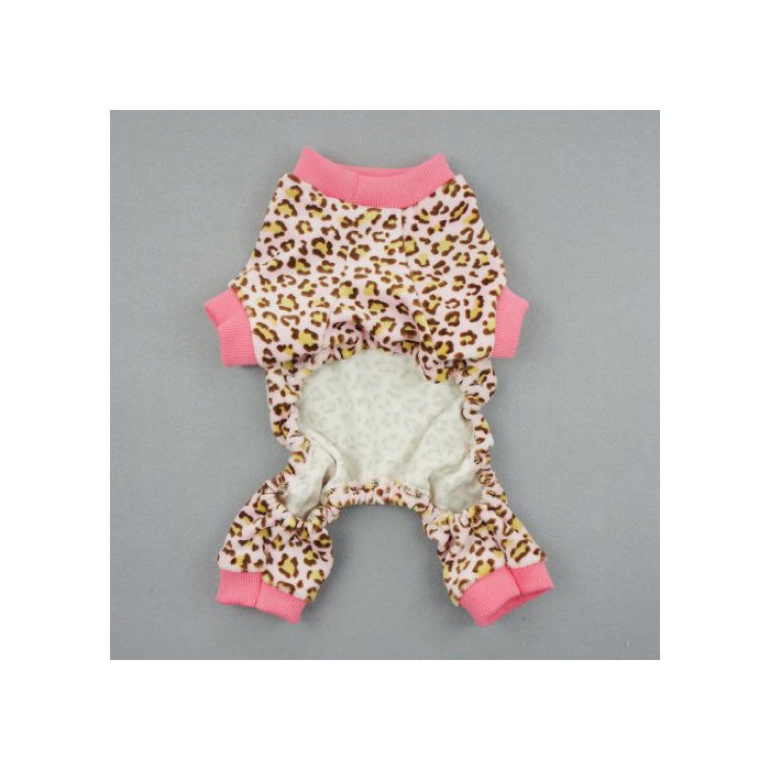 Fitwarm 견복 도그 웨어 롬퍼스(rompers) 방한 애완동물 복탈모 대책 실내복 소형견 표범 무늬 핑크 XXL [병행수입품]