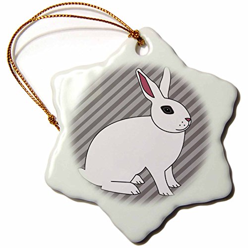 3dRose LLC orn_24636_1 Porcelain Snowflake Ornament, 3-Inch, "Cute Hotot Rabbit Bunny on Grey Stripes"