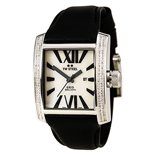 -. Title : TW Steel CE3015B Men's CEO Goliath Diamond Accented Bezel MOP Dial Black Leather Strap Watch