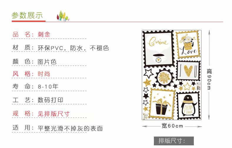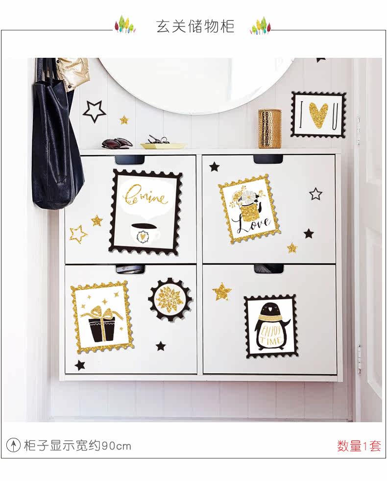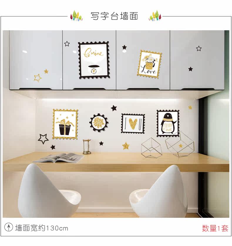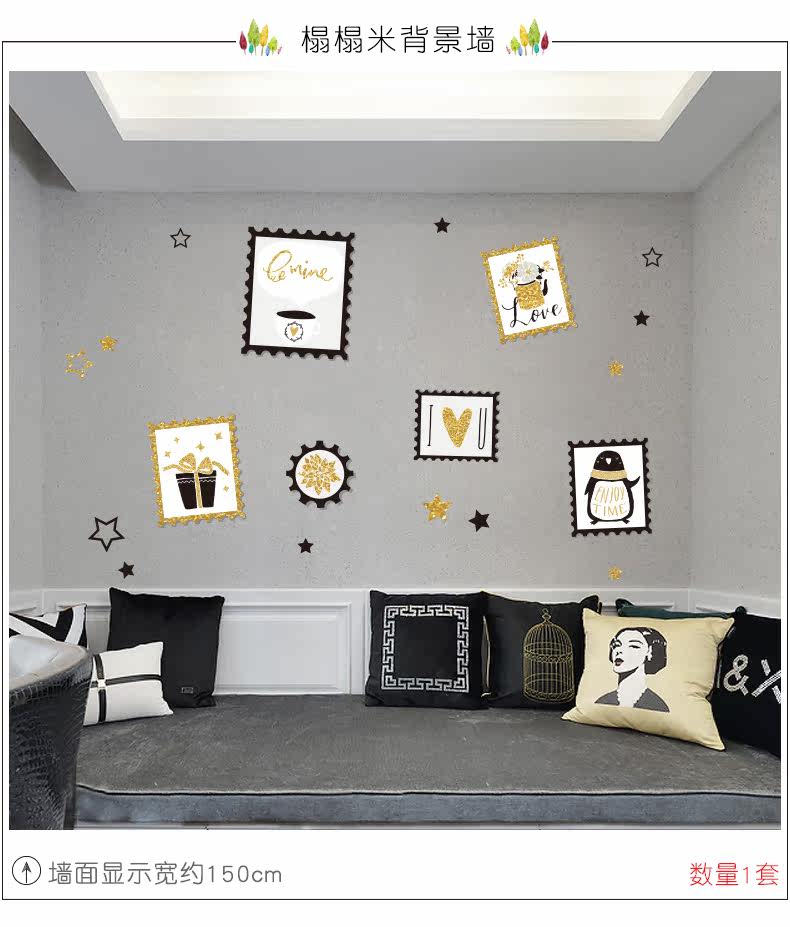 刺金时尚窗户相框墙贴纸简约文艺客厅温馨卧室床头素雅装饰贴画纸