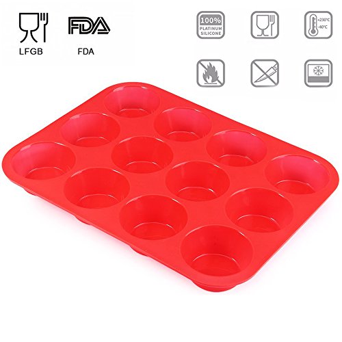 Inn Diary Silicone Muffin Pan,12 Cup Non-Stick Cupcake Baking Pans - Safe,Non-Stick Silicone Baking Mold for Cupcakes,Baking Tray - Easy To Use - Simple To Clean
