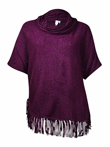NY Collection Women's Marled Cowl Fringed Dolman Sweater
