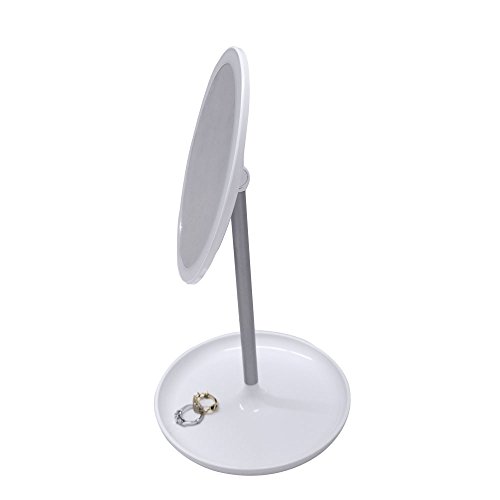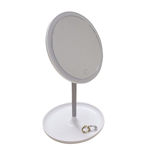 LED Makeup Mirror Touch Screen With accessory/Jewelry Tray, 6.5 wide Mirror USB Plug Included White By Decor Hut