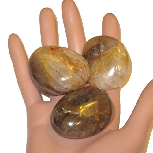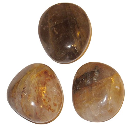 Quartz Polished Stone Golden 53 Set of 3 Natural Mineral Healing Crystals Positive Energy Rocks 1.8"