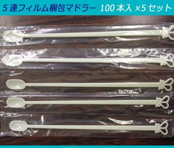 ホームパーティーやキャンプ、アウトドア、オフィス、店舗など、様々なシーンで大活躍する便利な使い捨てマドラー☆5連フィルム梱包のマドラーが100本単位で袋に入っております。 |