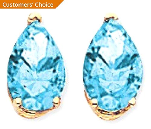 ICECARATS DESIGNER JEWELRY 14K YELLOW GOLD 9X6MM PEAR BLUE TOPAZ POST STUD BALL BUTTON STUD EARRINGS