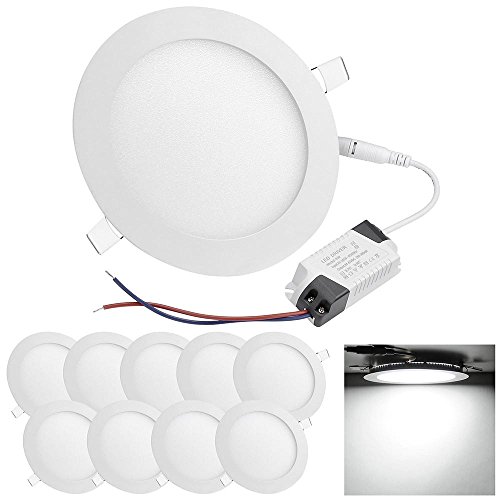 DELight 9W 6 Inch Ultra-thin Round LED Panel Light, 6000-6500K, 720 Lumens, 60W Equivalent, LED Ceiling Light, 10 Pack